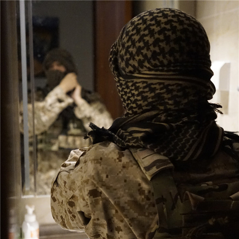 Material: Pure cotton Style: Full face Mask classification: Hooded mask Color: Green, Wolf Brown, Khaki, Dark Grey, Light Grey, Orange Pentagram, Yellow Pentagram, Blue Pentagram Size: 110CM * 110CM