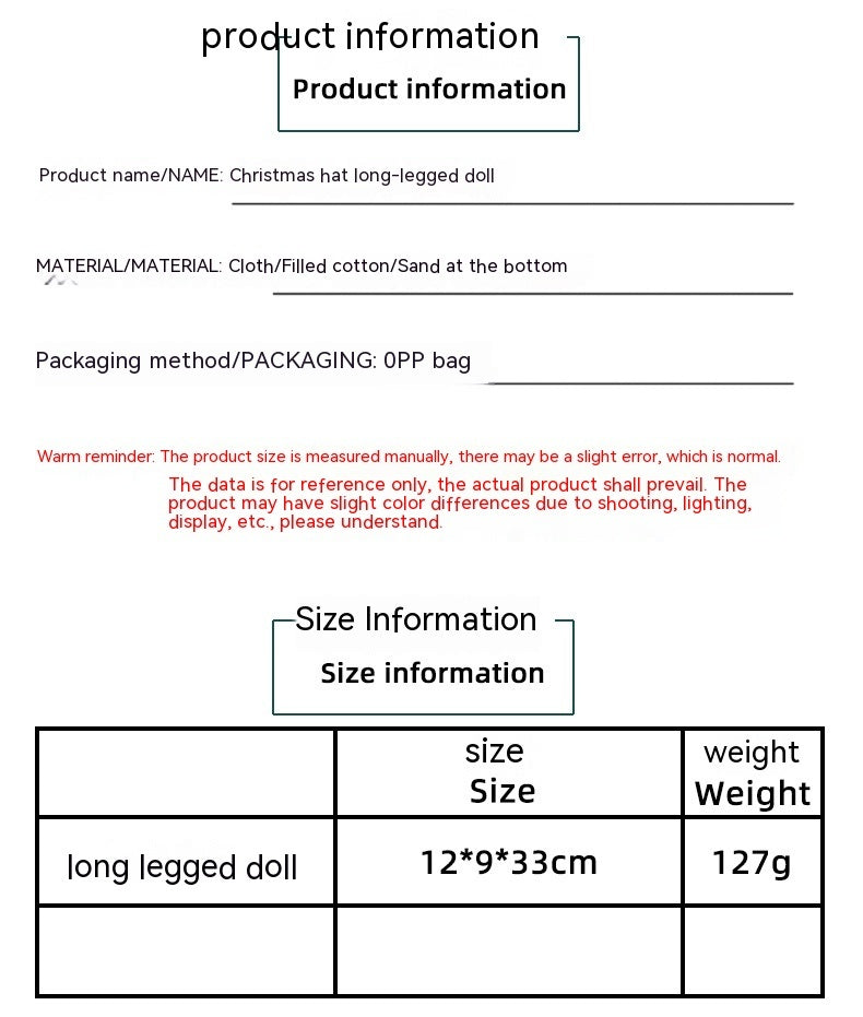 Name: Christmas hat long leg doll
