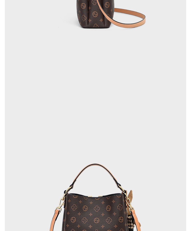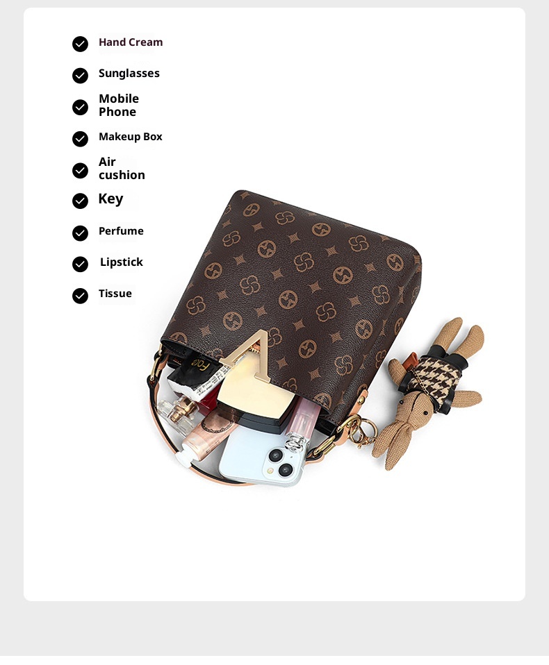 Product information: Inner material: Fabric Applicable scene: Everyday wear Outer pocket type: Inside slip pocket Material: PVC Bag style: Bucket bag Interior structure: Zippered hidden pocket, ID card pocket Trendy element: Printed pattern Style: Streetwear Shoulder strap type: Single shoulder strap Has compartments: No compartments
