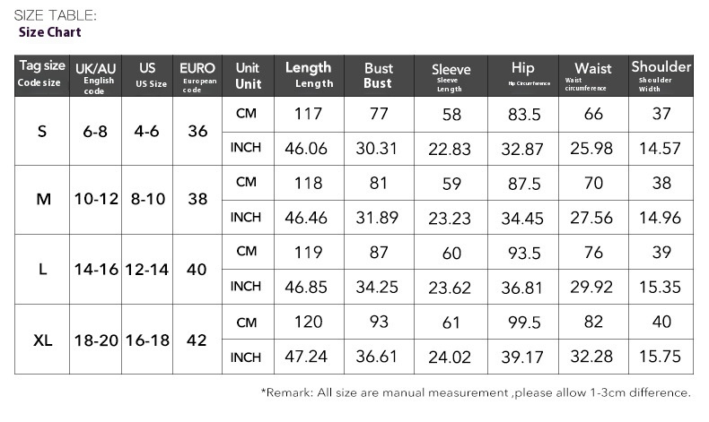1. Asian sizes are 1 to 2 sizes smaller than European and American people. Choose the larger size if your size between two sizes. Please allow 2-3cm differences due to manual measurement. 2. Please check the size chart carefully before you buy the item, if you don't know how to choose size, please contact our customer service. 3.As you know, the different computers display colors differently, the color of the actual item may vary slightly from the following images.