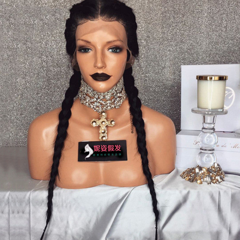 Female African Front Lace Synthetic Fiber Wig Big Braid