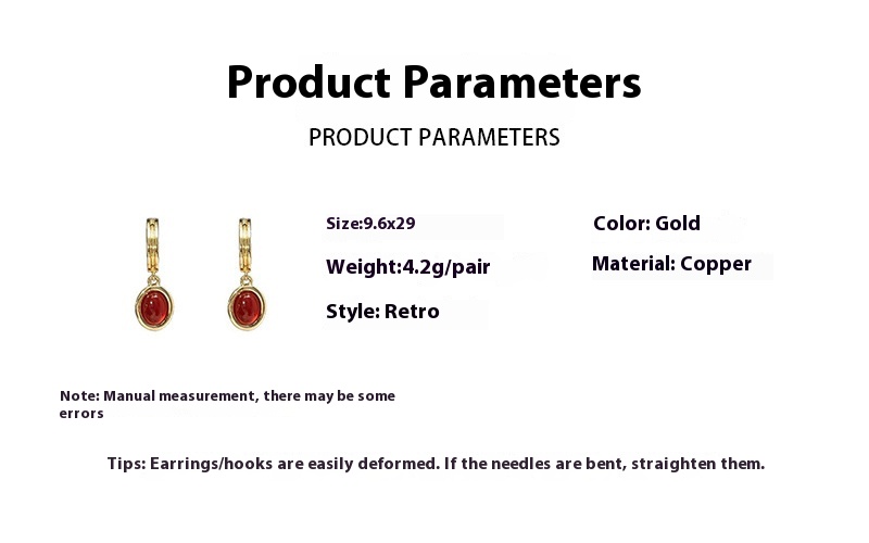 French Retro Red Cat Eye Earrings Niche