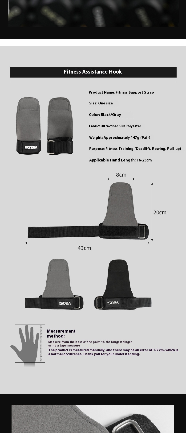 Product information: Applicable sports: Fitness weightlifting training Applicable scenarios: running sports, fitness equipment, fitness body Applicable people: general Specifications: black (one-pair package), Gray (one-pair package) Protective part: Wrist Category: Wristband