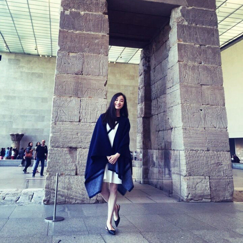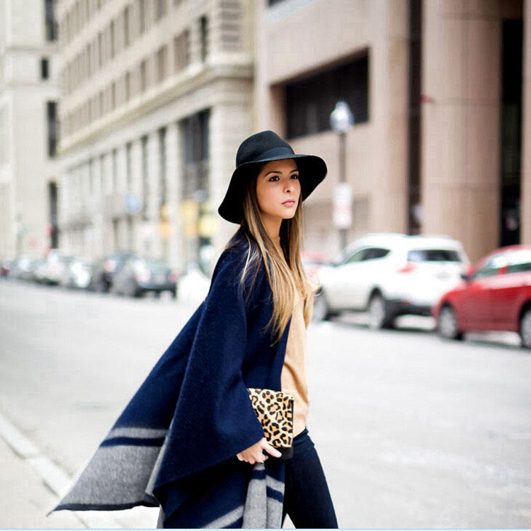 Imitated Cashmere Women's Selvedge Stripe Lengthened Slit Shawl Cloak
