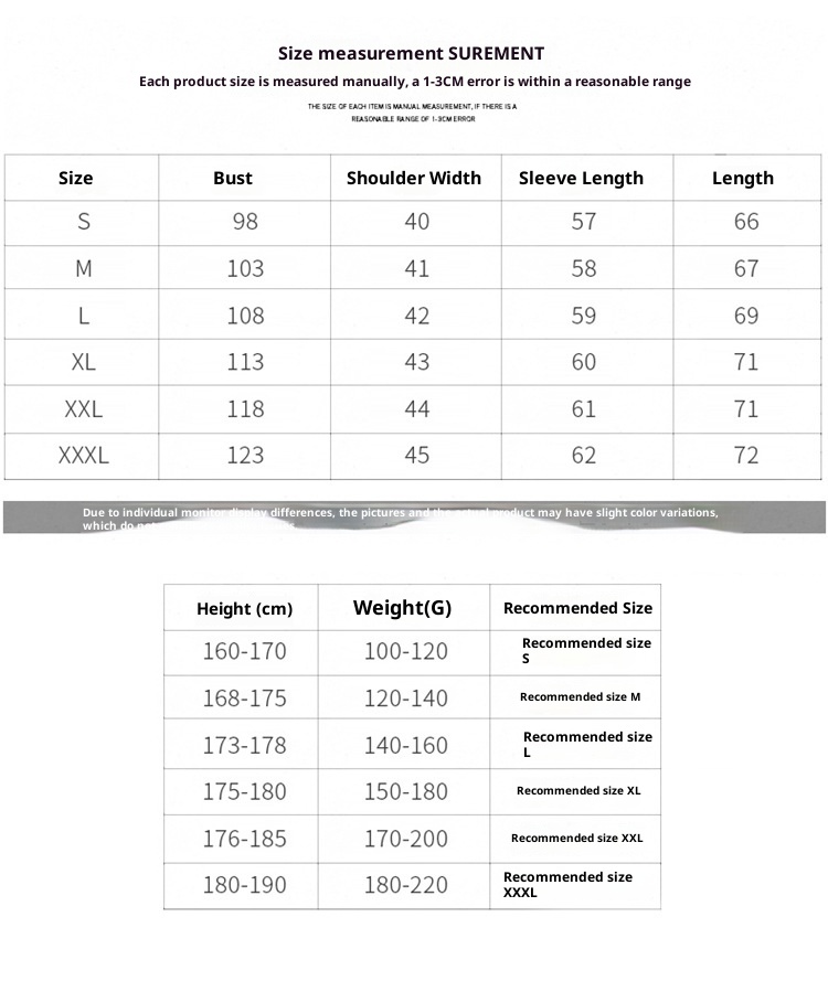 1. Asian sizes are 1 to 2 sizes smaller than European and American people. Choose the larger size if your size between two sizes. Please allow 2-3cm differences due to manual measurement. 2. Please check the size chart carefully before you buy the item, if you don't know how to choose size, please contact our customer service. 3.As you know, the different computers display colors differently, the color of the actual item may vary slightly from the following images.
