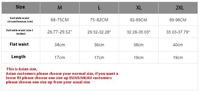 Size: M(68-75CM),L(75-82CM),XL(82-89CM),2XL(89-96CM)