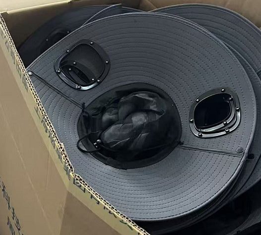 Hat material: 100% polyester fiber, Fan material: ABS, Color: Grey, Black, Beige