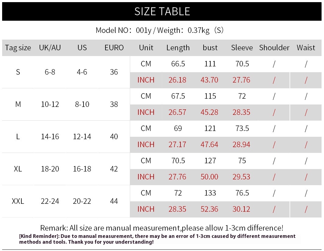 1. Asian sizes are 1 to 2 sizes smaller than European and American people. Choose the larger size if your size between two sizes. Please allow 2-3cm differences due to manual measurement. 2. Please check the size chart carefully before you buy the item, if you don't know how to choose size, please contact our customer service. 3.As you know, the different computers display colors differently, the color of the actual item may vary slightly from the following images.