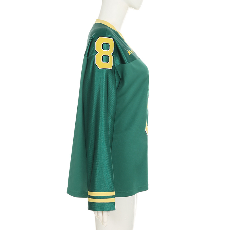 Product information: Pattern: letters/numbers/text Color: green Size: S,M,L Version: Oversized Style type: Japanese and Korean casual Popular elements: patterns, leisure, letters Style: pullover Fabric name: knitted Sleeve type: conventional sleeve Main fabric composition: Polyester (polyester fiber)