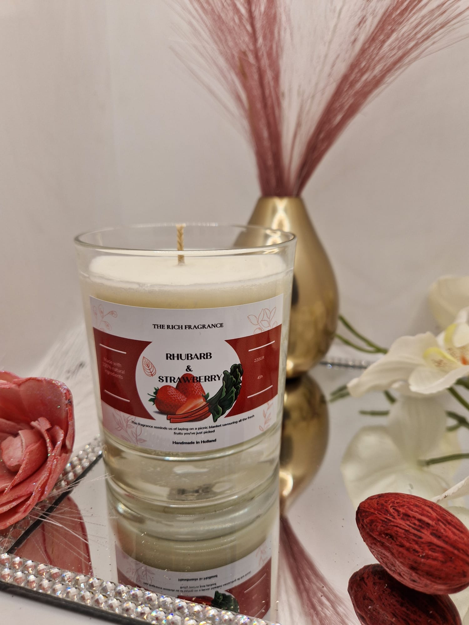 - Smooth and refreshing Strawberry and Rhubarb Fragrance Candle