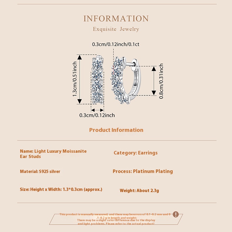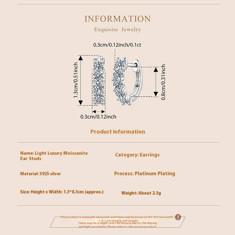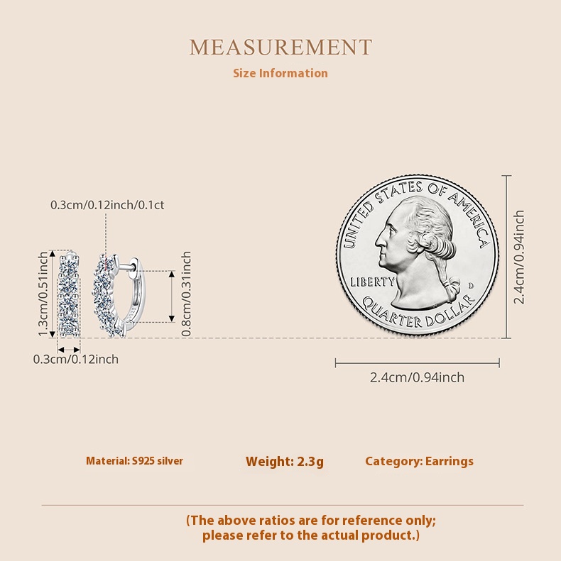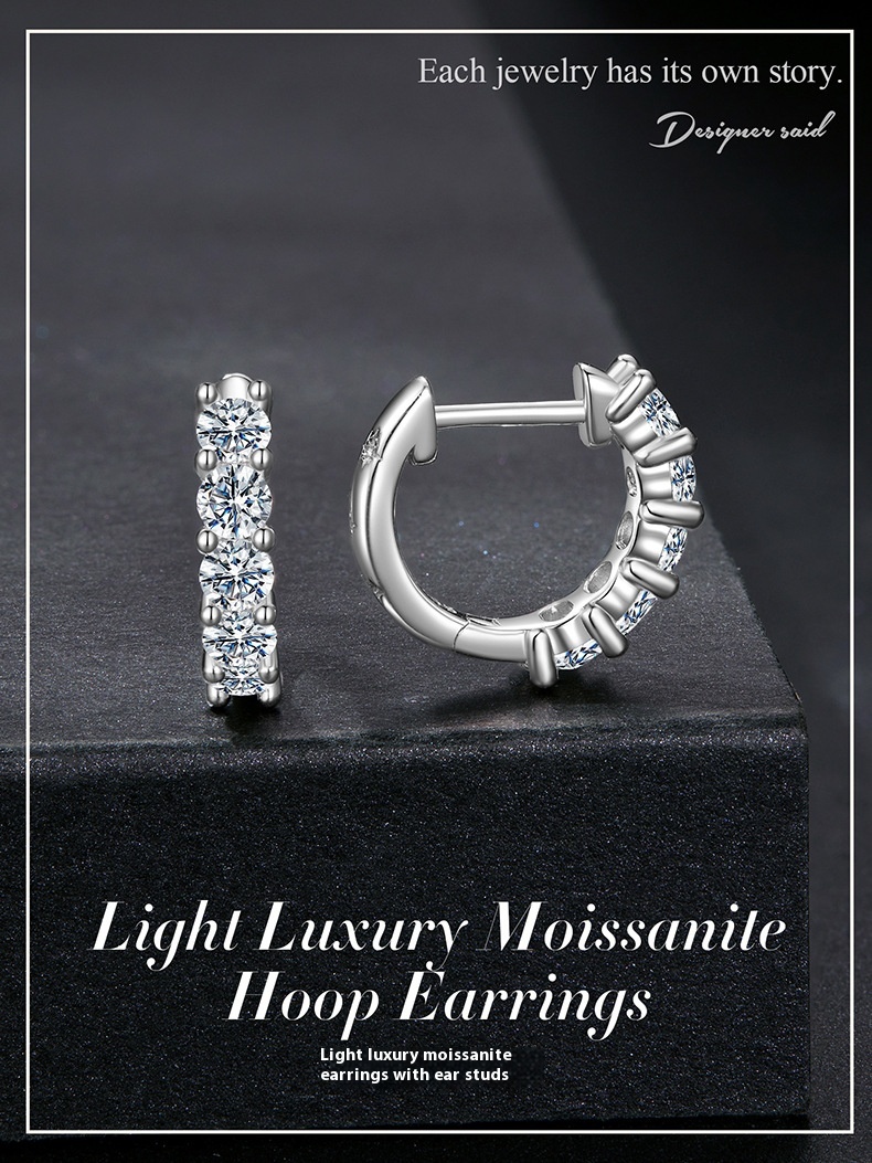Silver Ziyun New Shining Single Row Light Luxury Moissanite Ear Clip Women