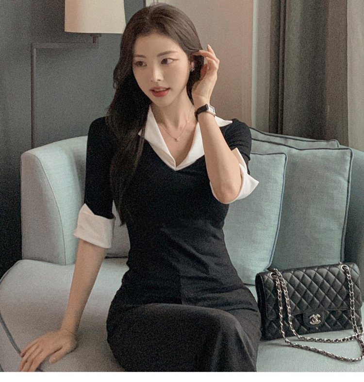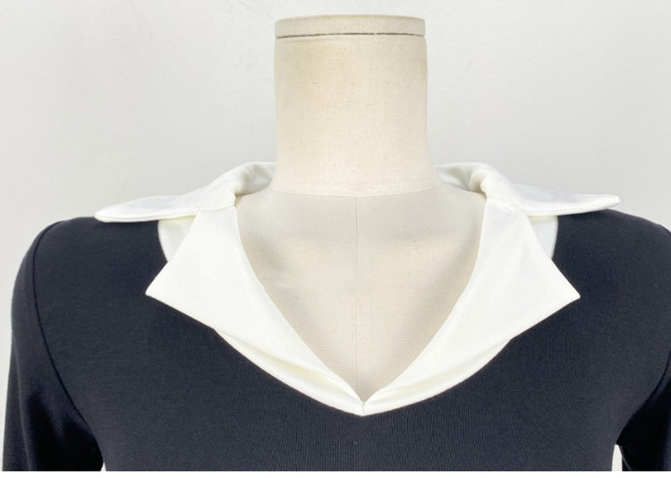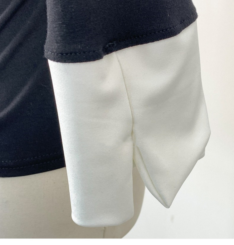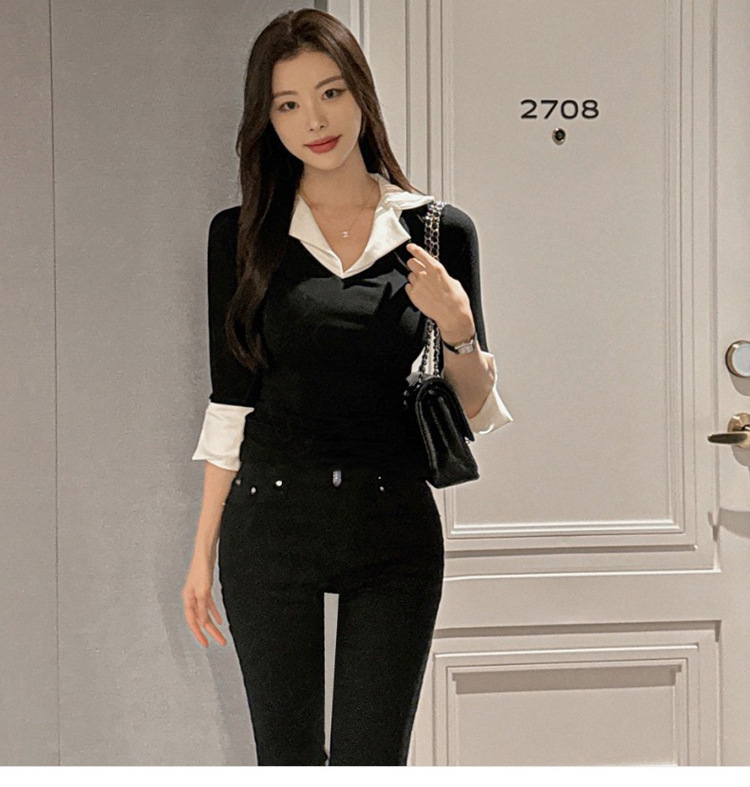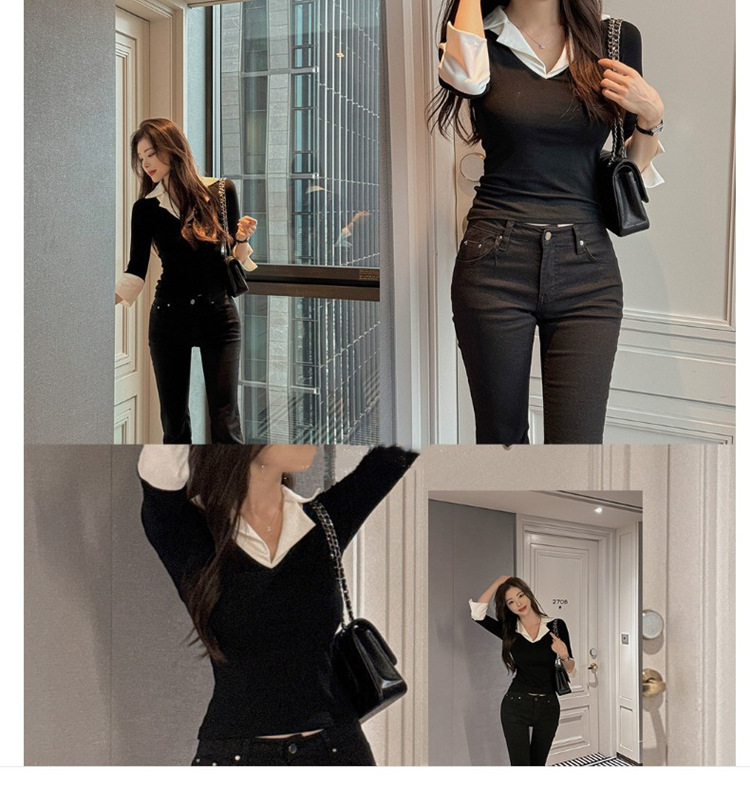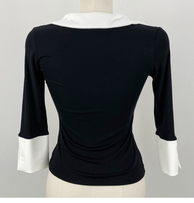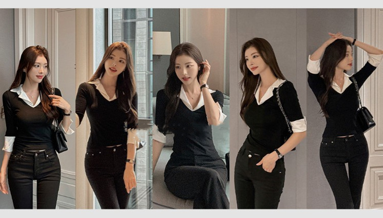 Temperament Wild V-neck Color-block Slim Fit Slimming T-shirt